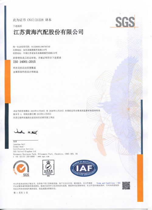 江蘇黃海汽配股份有限公司是一家具有中型生產規模省級股份制企業,公司享有進出口自營權,中國商檢一類企業……
